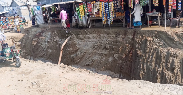 রাস্তা সংস্কারের নামে ৭ ফিট গর্ত খুঁড়ে ফেলে কাজ বন্ধ, দম বন্ধ অবস্থা ক্ষুদ্র ব্যবসায়ীদের